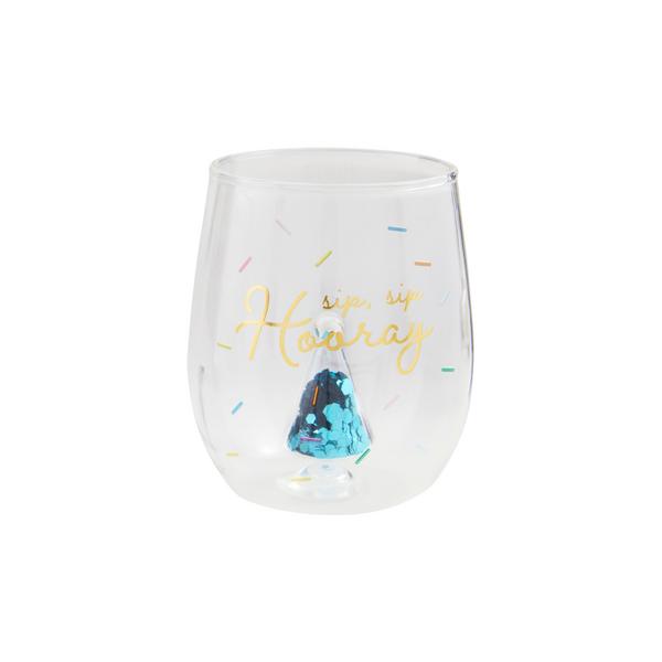 Celebrate in style with the Hooray Birthday Wine Glass, a stunning addition to any birthday celebration. This elegant foiled stemless wine glass features a unique interior glitter glass design, adding a touch of sparkle to your special occasion. With a generous 16 oz. capacity, it's perfect for toasting to memorable moments with friends and family. Crafted from high-quality glass, this wine glass combines both beauty and functionality, making it an ideal gift or a delightful treat for yourself. Raise a glass and make every birthday unforgettable with this exquisite piece.