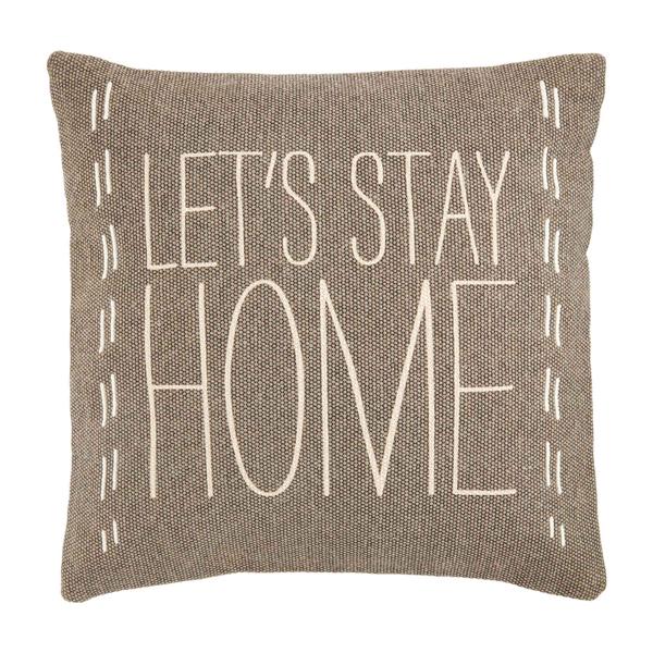 Stay home and snuggle up with our Lets Stay Home Throw Pillow. The topstitched dhurrie cotton pillow features a sentiment in the center. The pillow also features a zipper closure. The pillow arrives with an insert that is vacuum-sealed and located inside the pillow cover. The entire product arrives vacuum sealed for shipping and storage ease.