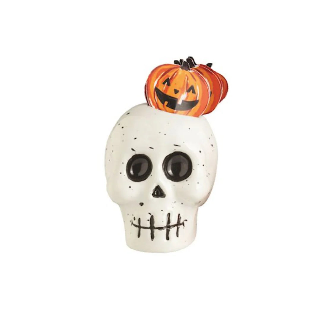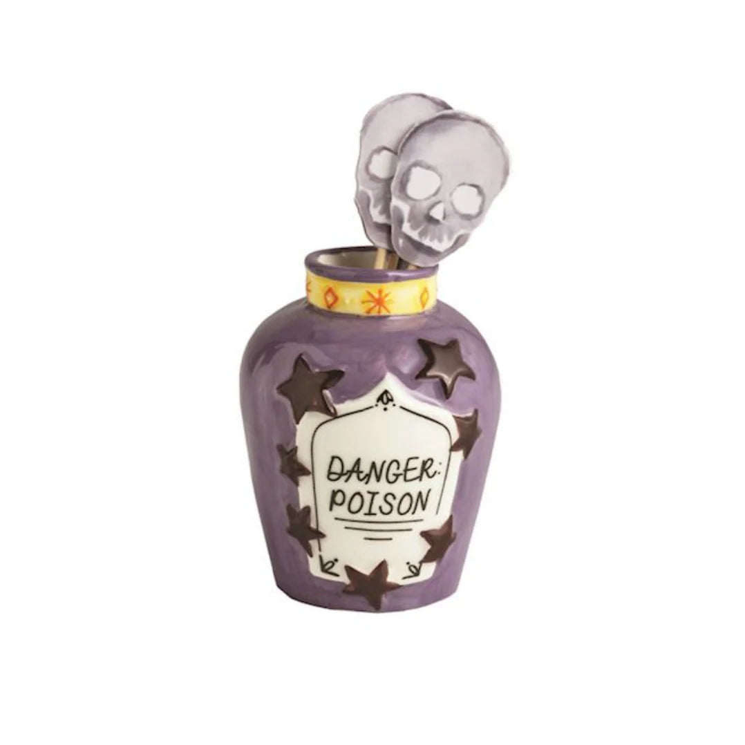 These charming ceramic toothpick holders are ready to hold your Halloween treats in style! Each set includes six festive toothpicks topped with spooky paper icons, perfect for your seasonal gatherings. The set features a hand-painted ceramic holder measuring about 2.5" tall by 2" wide, making your snack time delightfully eerie. 4 STYLES, SOLD SEPARATELY