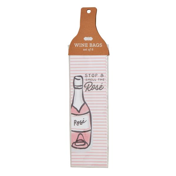 Rose Paper Wine Bag Set. This elegant set includes six beautifully crafted paper wine bags, each designed to add a touch of sophistication to your gift-giving. Measuring 16 1/2" x 5", these bags are perfectly sized to accommodate standard wine bottles. Made from high-quality paper, they offer a stylish and eco-friendly alternative for presenting your favorite wines. Ideal for any occasion, these rose-themed bags are sure to impress and make your gift stand out.
