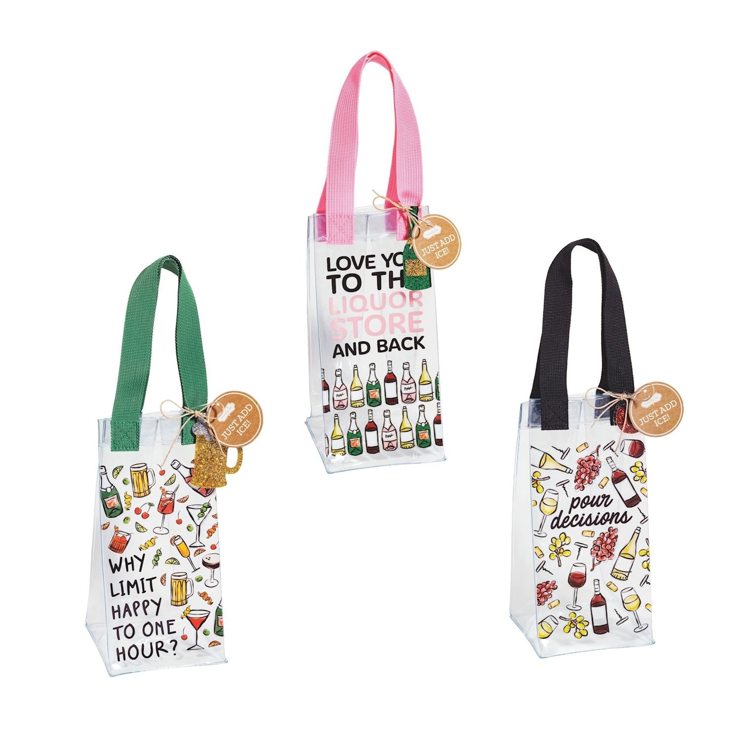 Bring the party wherever you go with our Assorted Birthday Ice Wine Bags, available in vibrant black, pink, and green—each featuring a fun celebratory saying that adds instant personality to your gift. Crafted from durable plastic, these bags are designed to keep your favorite bottle perfectly chilled on the go. Sturdy cotton handles make carrying effortless, while the glitter acrylic accent tag adds a festive sparkle that stands out at any celebration. Simply add ice, and the bag transforms into a portable wine chiller, making it the perfect companion for birthday parties, picnics, or gifting with flair.